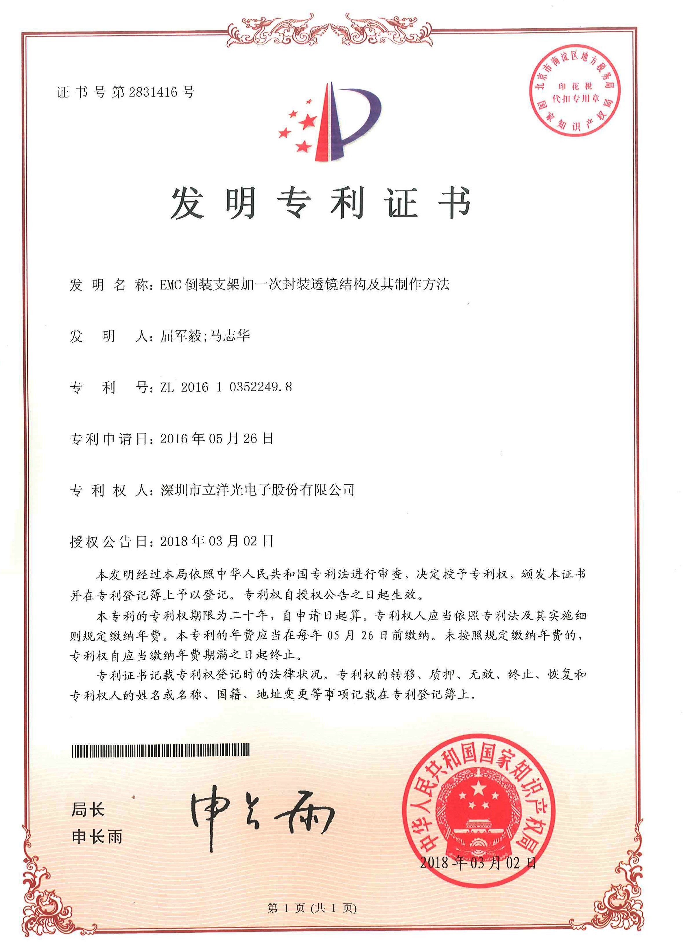 發(fā)明專(zhuān)利證書(shū)(專(zhuān)利號(hào):201610352249.8)