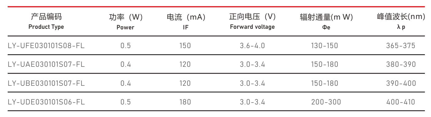 UVA紫外光源 PCT 3030有很強的穿透力,可以穿透大部分透明的玻璃以及塑料,采用高強度、高導熱氮化鋁陶瓷基板,支持表面貼裝技術,具有高輻射通量、高可靠性、低熱阻等優勢。