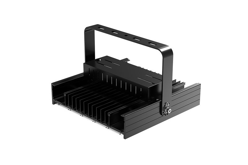 LED球場燈V20采用高壓壓鑄鋁合金外殼設計,堅固耐用,光束角度-90~180°可調,適用于不同照明場景,功率范圍100W~500W,適用于各種運動場地及區域照明。