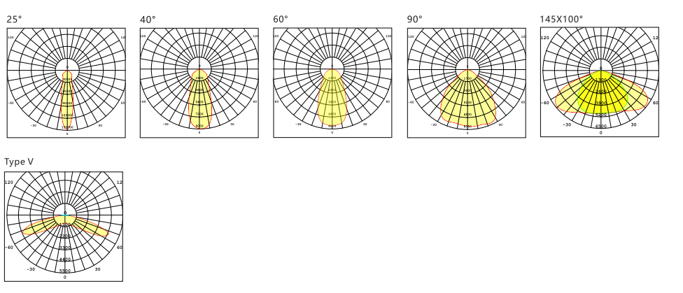 √ 25°,40°,60°,90°,145x100°,V型