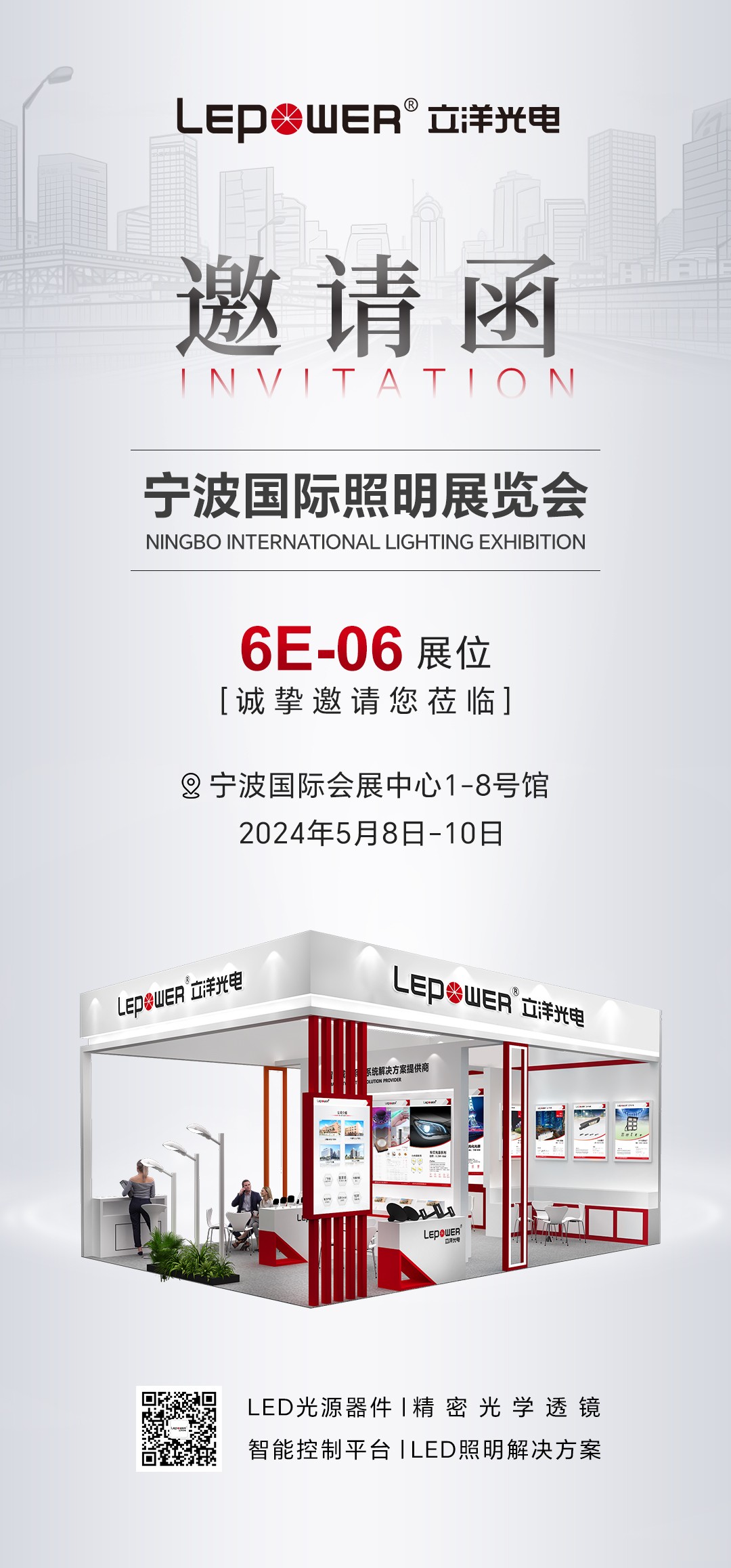 2024寧波國際照明展覽會,即將于2024年5月08-10日在寧波國際會展中拉開帷幕 !立洋光電將在6號館與業界同仁見面,展示最新的城市智慧照明解決方案,我們誠邀您蒞臨展會,共同探討照明行業的未來發展趨勢!