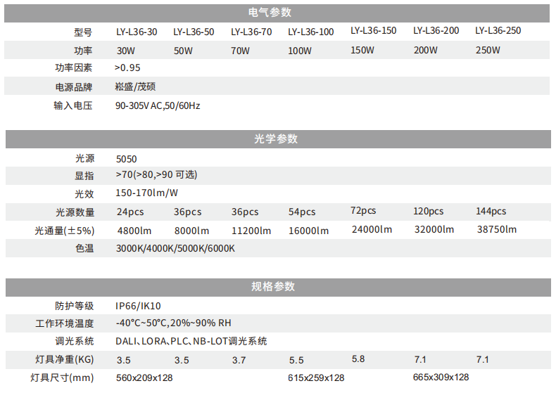 LED路燈L36采用多芯片封裝的5050 LED光源,性能穩(wěn)定,高壓壓鑄鋁合金外殼,表面戶外靜電噴塑工藝,耐候性強,可靠性高,支持光學(xué)定制化設(shè)計,均勻的照明分布適用于不同的照明工程。