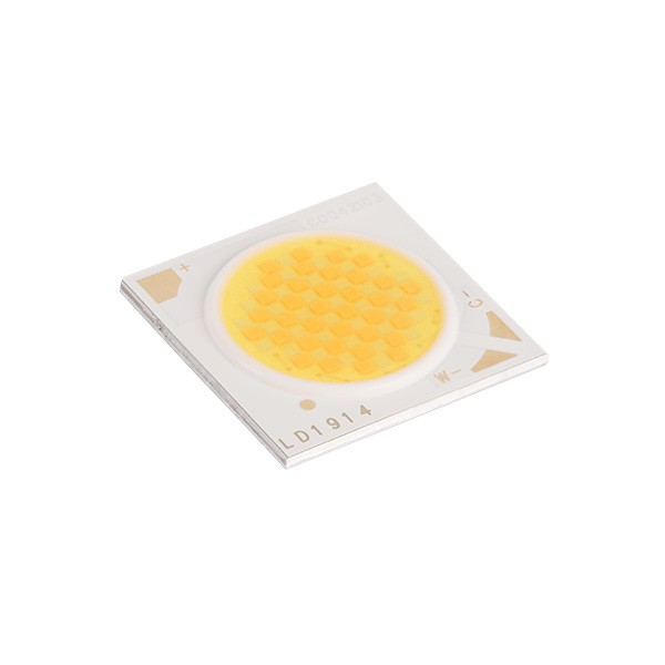 雙色調光COB光源LD 1914燈珠采用自主研發高激發效率熒光粉涂覆工藝及熒光膠整體填充封裝技術、高顯白光定義等工藝手段,具有小尺寸,高光效,高光密度等優點。
