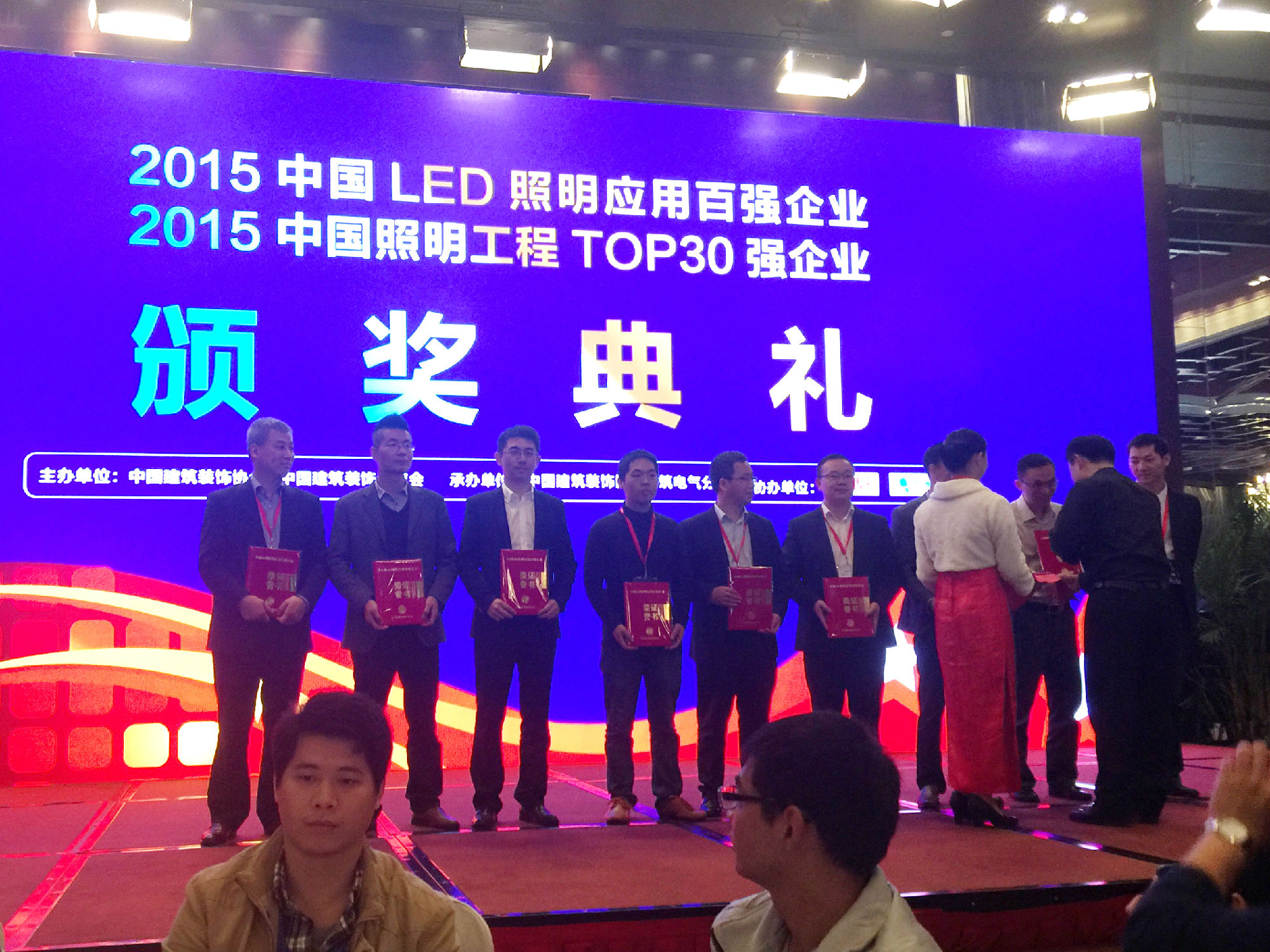 2015年12月3日,由中國(guó)建筑裝飾協(xié)會(huì)主辦的“把脈、突圍、預(yù)判——2015盛世精英匯·第六屆中國(guó)LED照明應(yīng)用峰會(huì)暨中國(guó)LED產(chǎn)業(yè)發(fā)展趨勢(shì)論壇”在廣州盛大召開(kāi),同日舉行的還有2015中國(guó)LED照明應(yīng)用百?gòu)?qiáng)企業(yè)、2015中國(guó)照明工程TOP30企業(yè)頒獎(jiǎng)典禮。