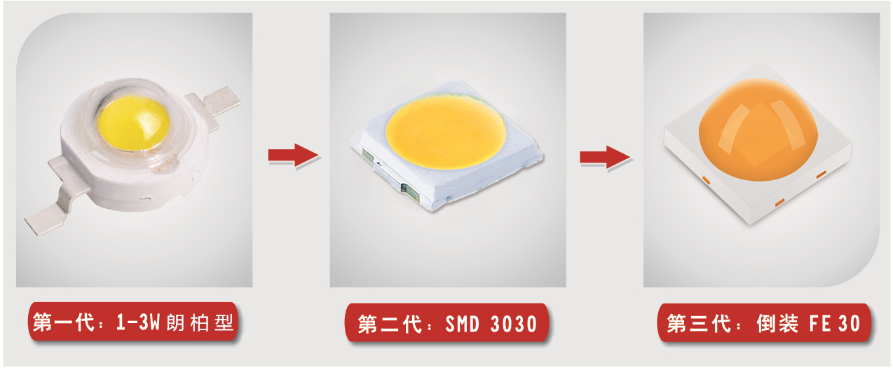 作為LED封裝行業的領軍企業,深圳市立洋光電子股份有限公司(以下簡稱“立洋股份”)自2008年成立以來,見證了LED光源產品的變革與技術創新。在大功率燈珠方面立洋股份產品發展主要經歷了3個階段:從最早的1-3W朗柏型燈珠、到SMD2835/SMD3030貼片燈珠,再到如今倒裝FE30/FE35系列,產品的晶片越來越小、可靠性越來越強、性價比越來越高。