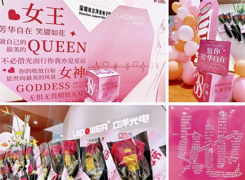 這份用心,不僅體現在三八婦女節這一天的特別安排,更融入到企業日常管理的點點滴滴。公司始終致力于為女性員工創造平等、尊重、充滿機遇的工作環境,讓每一位“女神”都能在這里綻放光彩,實現自我價值。這一天,屬于立洋光電女神的榮耀與快樂,如同前臺那永不凋謝的玫瑰,永遠鐫刻在了每個人的心中。