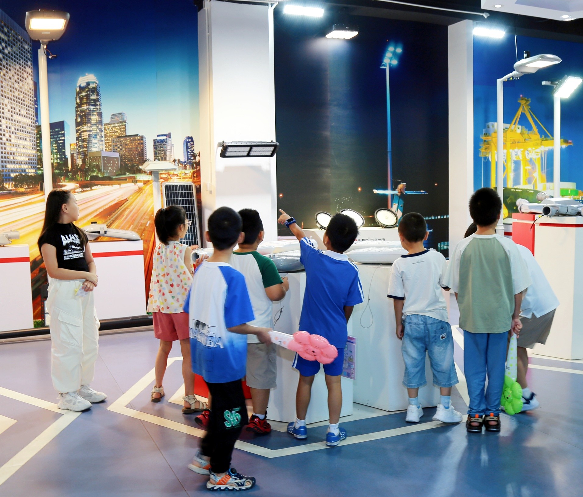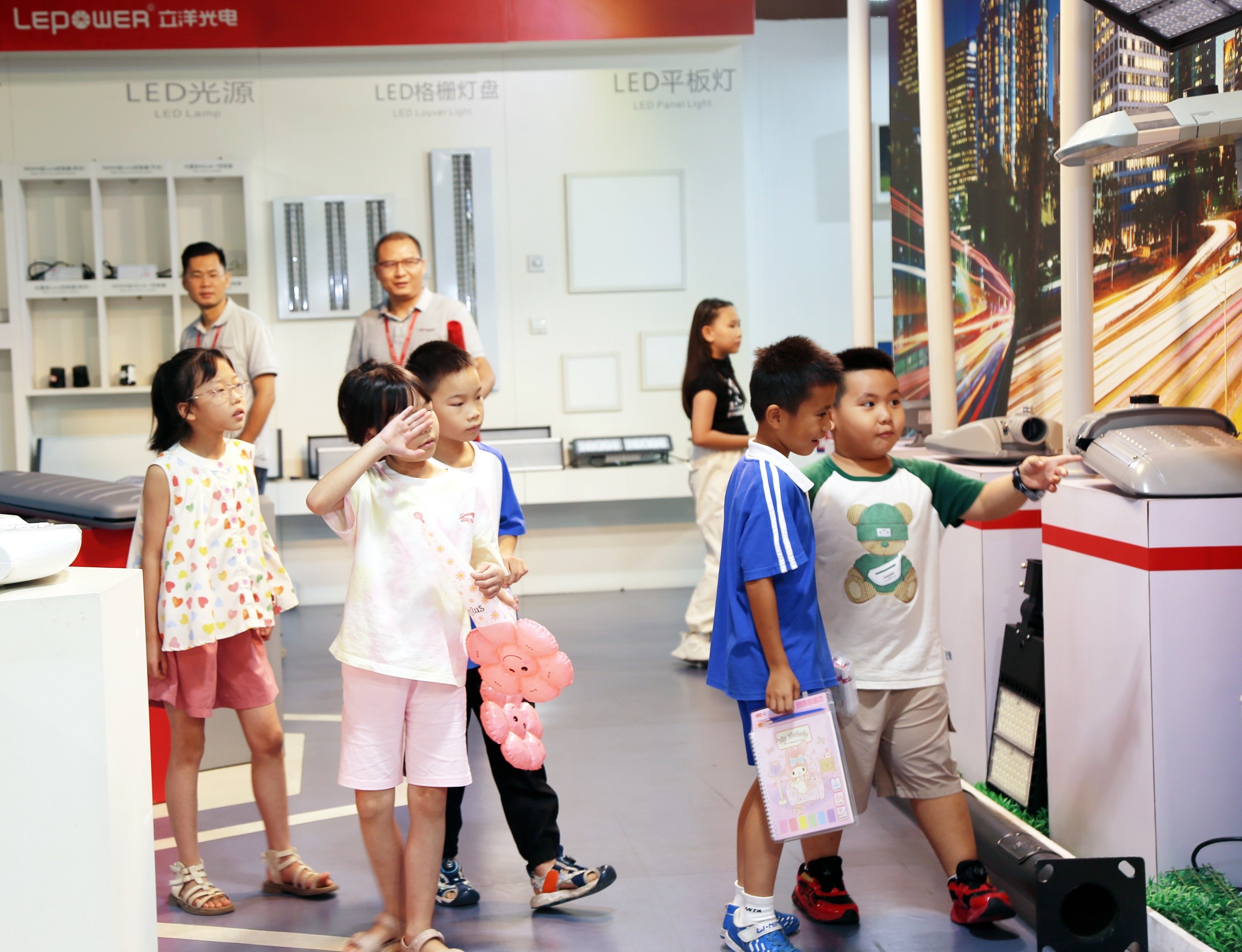 走進生產車間,整齊排列的生產線和忙碌而專注的立洋人讓小朋友們大開眼界,他們親眼目睹了爸爸媽媽平時工作的地方,對自己爸媽的工作有了更深刻的認識。一個小朋友看著展廳展示著各種LED照明燈具,眼中滿是好奇,說:“平時爸爸總說在‘追光’,今天我終于看到他工作的地方啦!”