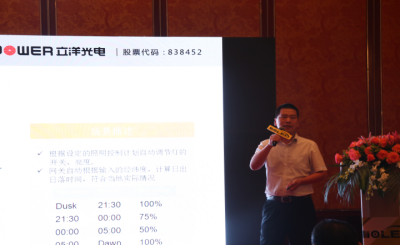 (立洋股份董事長(zhǎng)屈軍毅先生講解智能控制路燈技術(shù))
