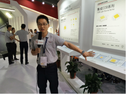 (立洋股份市場(chǎng)部負(fù)責(zé)人蔡方利先生向記者介紹光源產(chǎn)品)