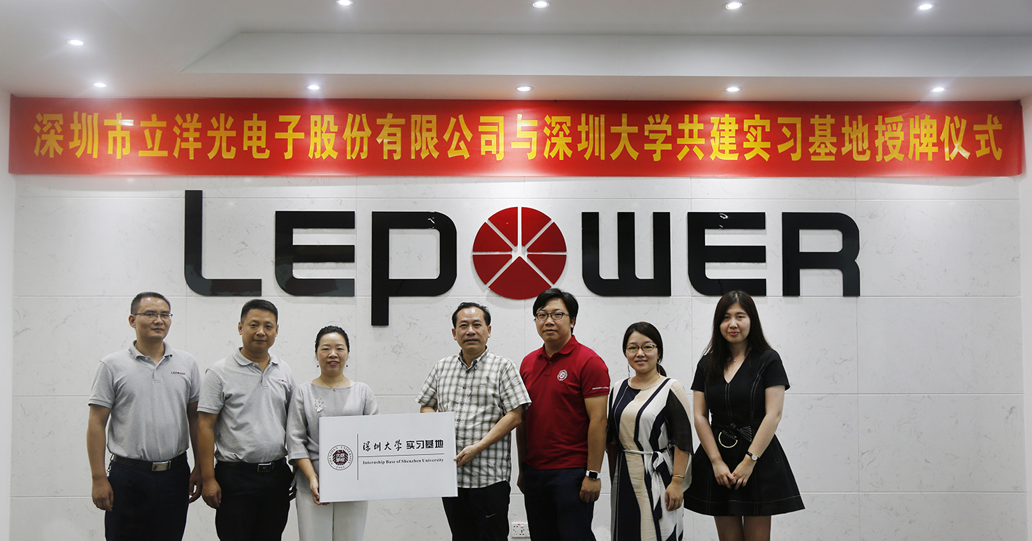 隨著科技興國戰略的實施和知識經濟時代的到來,社會發展對人才的需求越來越大,對人才的素質要求也越來越高,甚至從某種程度上說,企業競爭的核心就是人才的競爭。深圳市立洋光電子股份有限公司(簡稱立洋股份)作為國內領先的大功率LED封裝器件及定制化LED照明燈具方案提供商,在專業人才的培養方面也作了很多實質性工作。特別是在研發人才的培養上,經過多年的人才儲備以及對研發團隊持續建設,目前擁有多名深圳市高層次人才、寶安區高層次人才以及具有10年以上從業經驗的資深研發人員。2018年7月10日下午兩點半,立洋股份與深圳大學共建實習基地授牌儀式在立洋股份隆重舉行。