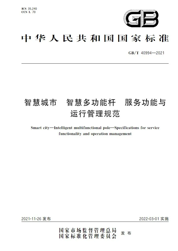 11月26日,國家市場監督管理總局國家標準化管理委員會批準發布了首個智慧燈桿國家標準——《智慧城市智慧多功能桿服務功能與運行管理規范》!