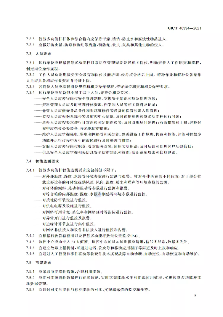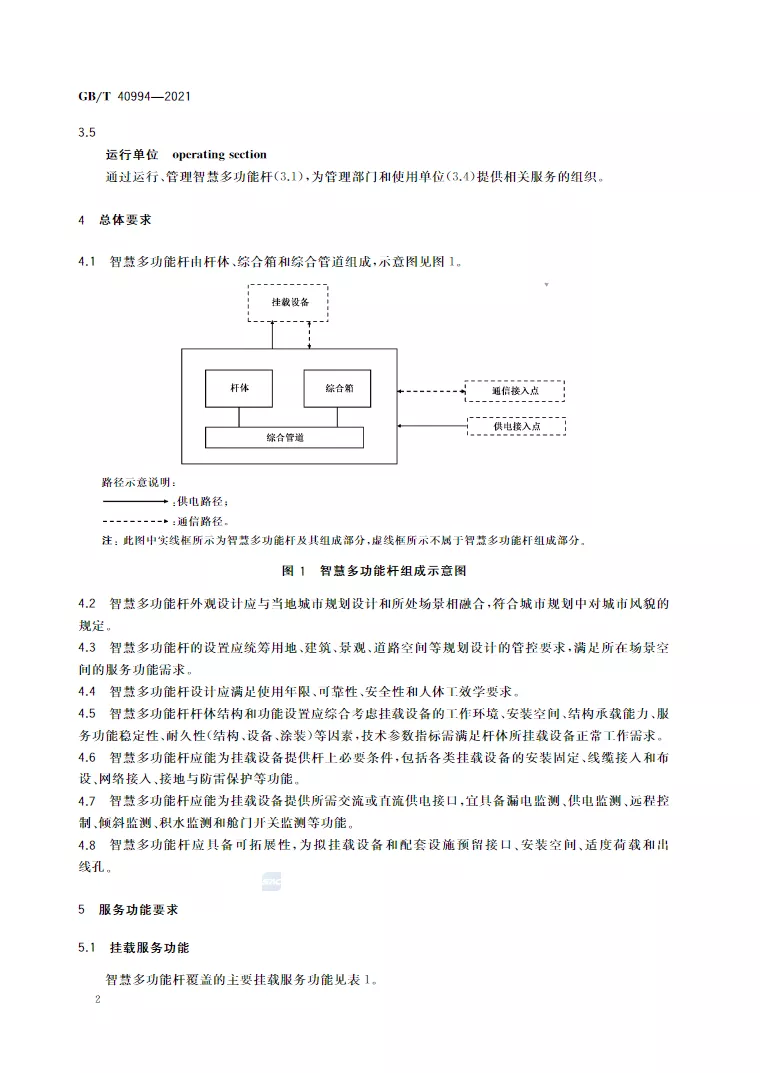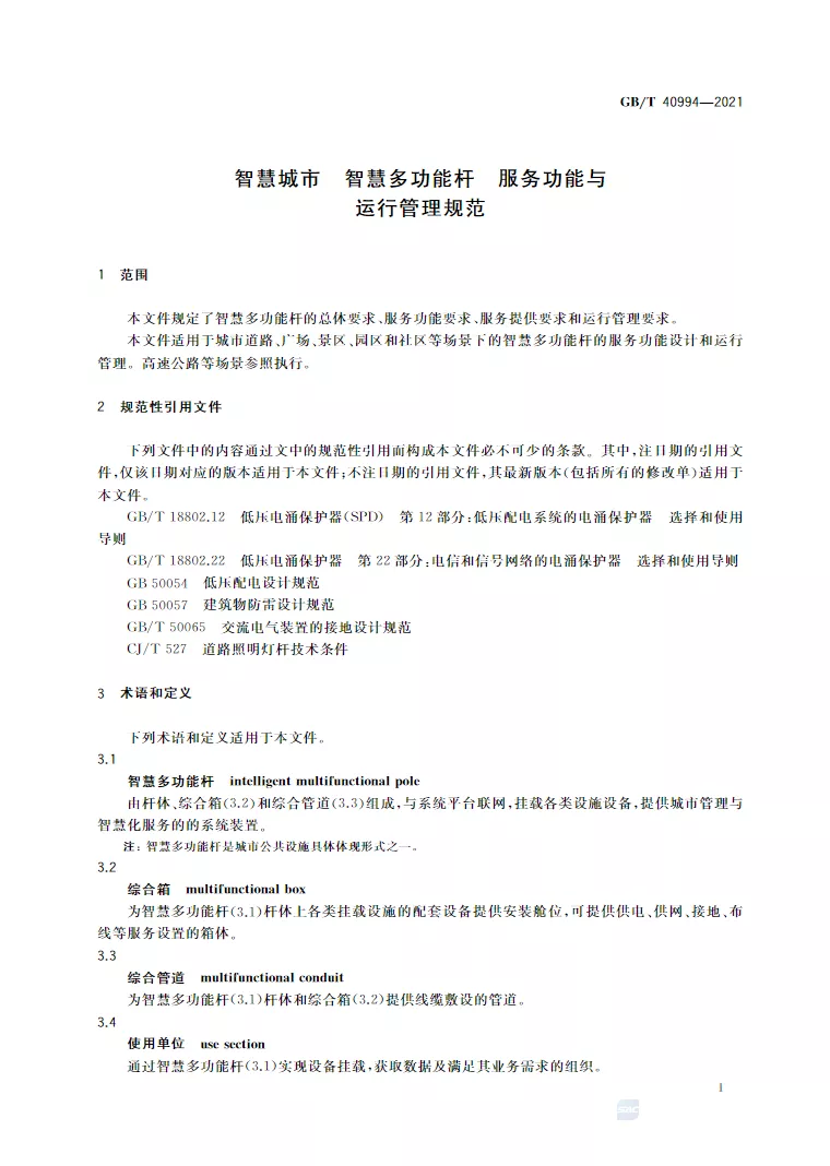 《規范》規定了智慧多功能桿的總體要求、服務功能要求﹑服務提供要求和運行管理要求。《規范》適用于城市道路、廣場、景區.園區和社區等場景下的智慧多功能桿的服務功能設計和運行管理、高速公路等場景參照執行。