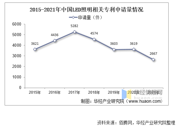 2015-2021年中國(guó)LED照明相關(guān)專利申請(qǐng)量情況