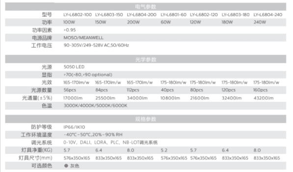 LED路燈L68的技術(shù)參數(shù)