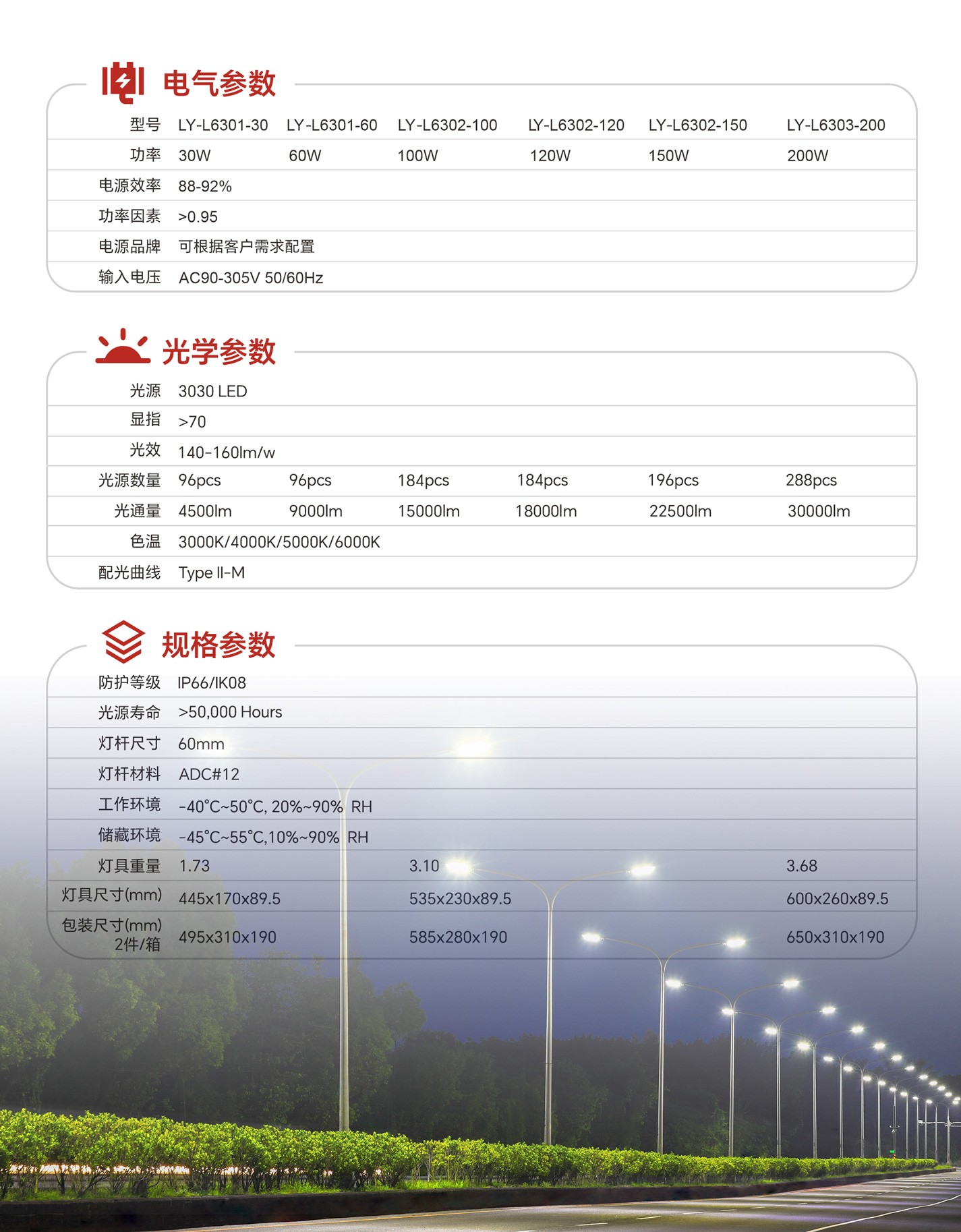 為了滿足不同道路照明需求,LED路燈L63提供了從30W至200W的功率選擇。無論是狹窄的街巷還是寬闊的主干道,都能找到最適合的功率配置,實現精準照明,既避免了能源浪費,又確保了照明效果。