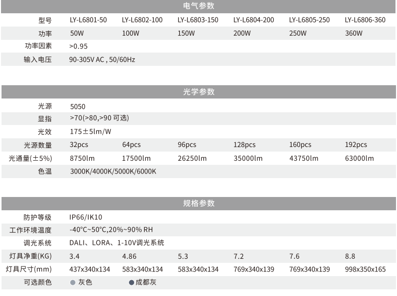 √ LED路燈L68功率范圍在50W-360W